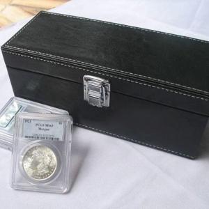 JX-LCLYL 20pcs コインスラブ収納ボックスケースホルダー黒 pu レザー pcgs ngc