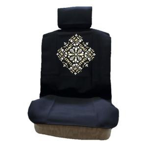 エプロン タイプ シートカバー 運転席 助手席 兼用 2席分セット リース柄 ブラック 黒色 サイズ:約58×122cm 防水防汚 ウエットスーツ素材