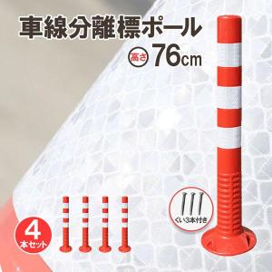 車線分離標 車線分離標ポール 76cm 4本セット コーンポスト 視線誘導標 ガードポール 反射 ポスト 駐車場 目印 車止め 通行止め 区切り