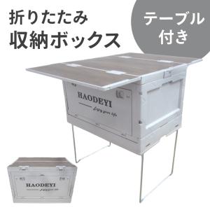 コンテナボックス 屋外 折りたたみ テーブル アウトドア 小型 収納ボックス 収納ケース キャンプ 収納 蓋付き 木目天板 折りたたみコンテナ