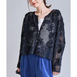 カーディガン 3Dフラワーメッシュカーディガン レディース