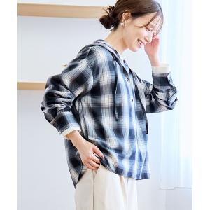 ブラウス シャツ TRオンブレチェックフーディシャツ レディース