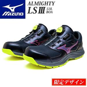 限定 ミズノ 安全靴 ALMIGHTY LS3 53L BOA F1GA2606 ネイビー×サイバーピンク×イエロー (オールマイティLSIII 53L BOA) ローカット 3E相当【在庫有り】