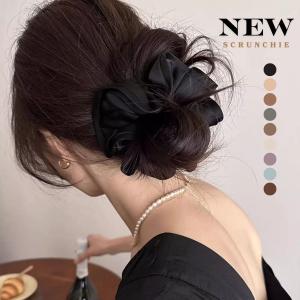 シュシュ ヘアゴム 大ぶり レディース 黒 シンプル 大人 かわいい ヘアゴム サテンフリル ヘアアクセサリー おしゃれ カジュアル オフィス ヘアアレンジ