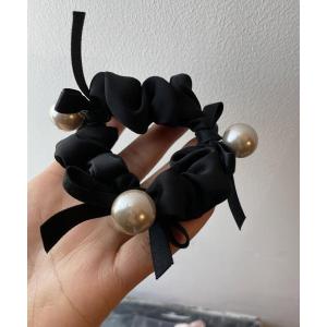シュシュ パール リボン 黒 白 ヘアアレンジ ヘアゴム 大きめ サテン ヘアゴム おしゃれ アクセサリー