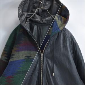 90s Reversible Jacket リバーシブル ネイティブ柄 ウール シープスキン レザー コンビネーション フーデッド