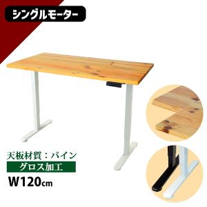 昇降デスク 電動 エコノミーモデル PSE適合 120cm 1200mm パイン材 高級 木製 天板 グロス加工 耐荷重約70kg(脚部) スタンディングデスク