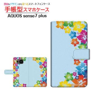 カメラ穴対応 手帳型 AQUOS sense7 plus ケース アクオス センスセブン プラス カバー A208SH スマホケース ハイビスカス模様