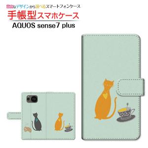 カメラ穴対応 手帳型 AQUOS sense7 plus ケース アクオス センスセブン プラス カバー A208SH スマホケース ねことティーカップ