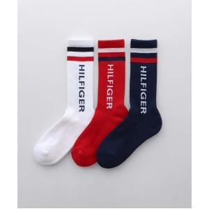 靴下 「3足セット」TOMMY HILFIGER メンズ レディース オーガニックコットン混 足底パイル 縦ロゴライン リブソックス 92554050