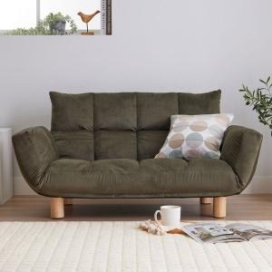 【ポイント5倍!】ふかふか カウチソファ コーデュロイカーキ 肘付 コンパクト 脚付 リクライニング フロアソファ ローソファ LIRAKU