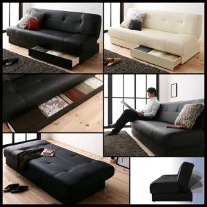 ソファ ソファベッド 3人掛け 4人掛け 合成皮革 PUレザー 横幅190cm 座面下に引き出し2杯付き 4段階リクライニング シングルベッドサイズ 日本製