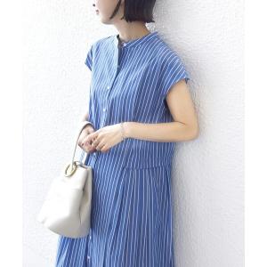 ワンピース 「WEB限定」「手洗い可能」ストライプ サイド タック ワンピース