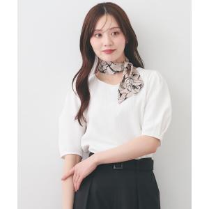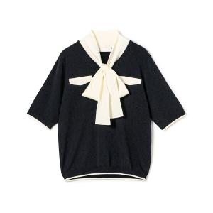 ニット セーター ストレッチタックドット ボウタイプルオーバー レディース