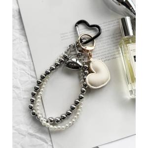 チャーム 「 NOLITA / ノリータ 」3WAYパール ハートチャーム 付き カラビナ ストラップ スマホ バッグ キーホルダー 対応 バッグチャ