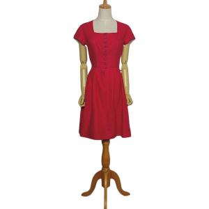 半袖 チロル ワンピース 赤 レディース サイズM位 ヨーロッパ古着