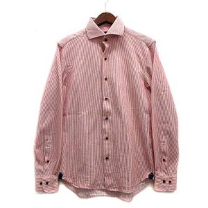 テットオム TETE HOMME ワイドカラー ストライプ ジャージー シャツ 長袖 レッド 赤 M メンズ
