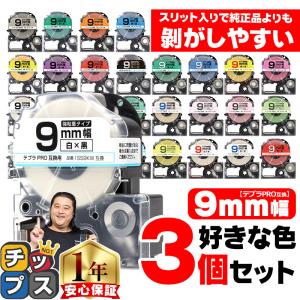 9mm幅テプラの好きな色が3個セット テプラ テープ テプラプロ テプラPRO用互換 キングジム対応 9mm(テープ幅) カラー 互換テープ フリーチョイス