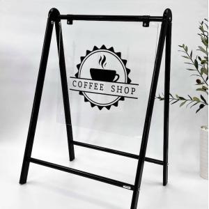 【データ入稿】Bサイン 透明仕様 透明アクリル 看板 店舗用 バリケード型 看板 スタンド 立て看板 バリケードサイン 注意喚起 屋内