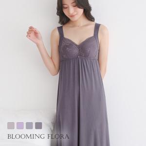 ルームウェア パジャマ ワンピース カップ付き マキシ丈 ナイトブラ 昼夜兼用 一体型 M L LL 夏 ブルーミングフローラ 爆買