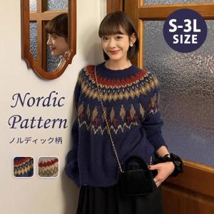 ノルディック柄 ニット セーター レディース S〜3L 秋冬 ゆったり 大きいサイズ 長袖 厚手 暖かい トップス かわいい 韓国風 ナチュラル カジュアル 体型カバー