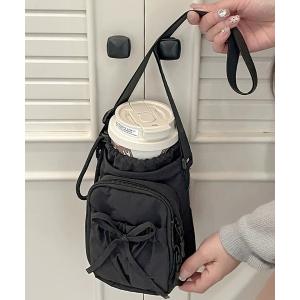 ショルダーバッグ バッグ ボトルホルダー ショルダー ストラップ リボン 巾着 ペットボトル ポーチ付き ショルダーバッグ レディース