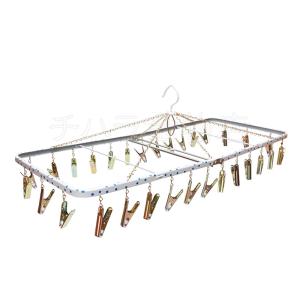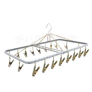 ニシダ 角ハンガー ファミリーD(幅60cm) ピンチ20個付 青水玉 スチール製ピンチ
