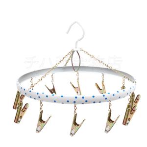 ニシダ 円形ハンガー マルニシリング D(直径35cm) ピンチ12個付 青水玉 スチール製ピンチ