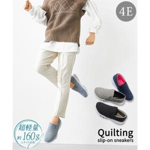 スニーカー 靴 4E 幅広 ゆったり ワイド 大きいサイズ レディース 超軽量 軽い キルティング サイドゴム 脱ぎ履きらくちん スリッポン (アクアカルダ)