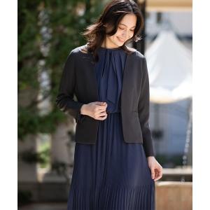 セットアップ ダブルクロスノーカラージャケット+シフォンジョーゼットプリーツワンピースアンサンブル「大きいサイズ有」 レディース