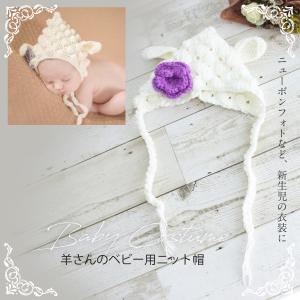 コスチューム 写真撮影 記念写真 赤ちゃん ベビー用帽子 ニット 白 耳付き ふわふわ紐付き 新生児 ニューボーンフォト
