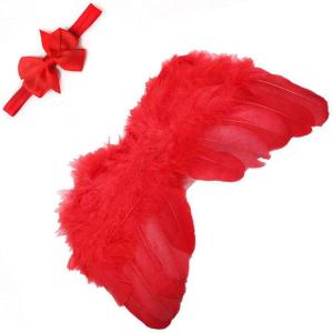 新生児 赤ちゃん 天使 ニューボーンフォト 小物 コスチューム エンジェル 翼 羽根 リボン 飾り セット Red(Red 赤 レッド)