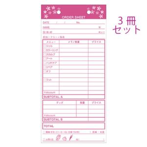 [ネイルサロン顧客管理]ネイルサロン伝票/オーダーシート(ピンク)【CAST】100枚つづり×3冊(300枚)セット