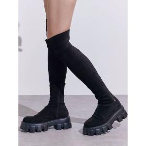 ブーツ 厚底スニーカーソールストレッチブーツ レディース