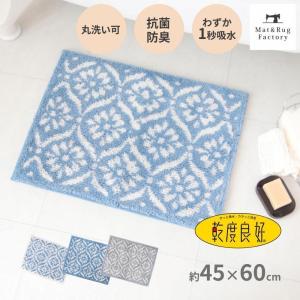 バスマット 足ふきマット 速乾 吸水 乾度良好 ボーテ 約45×60cm おしゃれ お風呂マット 足ふきマット 洗濯可 洗える モロッコ 青 ブルー オカ