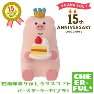 15周年ありがとうマスコット バースデーケーキ(ブタ) 15thANNIVERSARY&HAPPYBIRTHDAY デコレ コンコンブル クリックポスト可