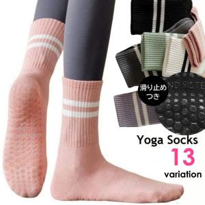 ヨガソックス 滑り止め付 クルーソックス 単品 レディース 靴下 フィットネス ジム ピラティス スポーツ ライン入り シリコン 女性用 婦人用 フッ
