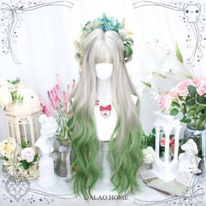 ウィッグ グラデーション lolita レディース フルウィッグ 小顔効果抜群 長髪 ロングウィッグ ゆめ可愛い 原宿風 かつら ホワイト×グリーン