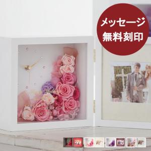 プリザーブドフラワー 花 時計 還暦祝い 名入れ 女性 花時計 結婚祝い 写真立て 退職祝い 金婚式 両親 古希 フォトフレーム 高級 スワロフスキー プレミアム