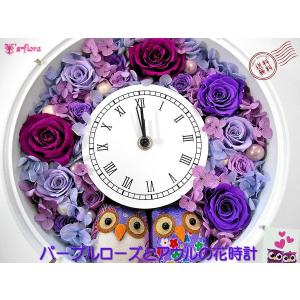 プリザーブドフラワー 古希祝い プレゼント 母 紫 プリザーブドフラワー 古希祝い プレゼント 女性 喜寿祝い パープルローズとアウルの花時計