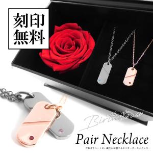 LOVERS 限定 誕生石入り ペアネックレス 送料 刻印 無料 即日発送 フラワーBOX メンズ レディース セット ハート プレゼント ペアアクセサリー