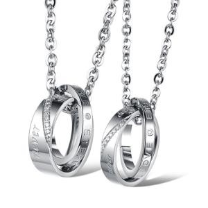 【即納】ペアネックレス カップル ネックレス ペンダント 2連リング レディース メンズ ステンレス チェーン おそろい 記念日 プレゼント 贈り物