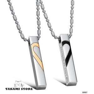 ペアネックレス カップル プレゼント ステンレス ジュエリー メンズ レディース BR-J069 ハート( MSB&LPW)