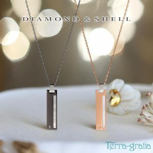 ペアネックレス 刻印 ステンレス 30代 40代 50代 大人 ブランド シンプル 金属アレルギー ダイヤモンド シェル プレート 2本セット Terra-gratia テラグラティア