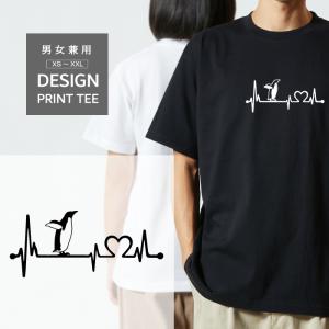 Tシャツ 半袖 ぺんぎん ペンギン ハート 心電図 メンズ レディース シンプル 大きい サイズ ゆったり 面白い おもしろい 白 黒 プリント ティーシャツ