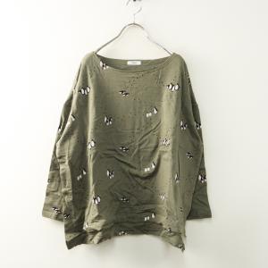 【期間限定価格】美品 マーブルシュッド marble SUD ペンギンボートネックプルオーバー\カーキ 裏毛 カットソー Tシャツ【2400014806182】