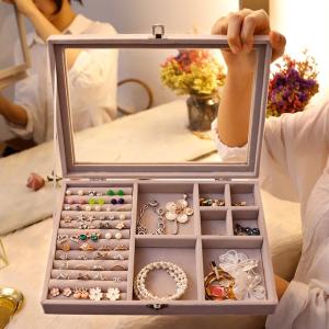 イヤリング,リング,ブレスレット,イヤリングを収納するためのガラスカバー付きベルベットケース