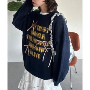 ニット セーター ショルダーリボンフレアスリーブニット レディース