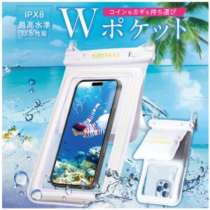 2wayポケット小物収納付 防水スマホケース スマホ 防水ケース 海 ストラップ付 白 黒 完全防水 IPX8 スマホ防水ケース プール お風呂 防水 小銭 コイン 匠彩