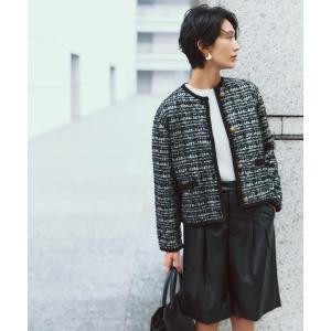 ミラオーウェン Mila Owen コンパクトダブルツィードジャケット ノーカラー 0 黒 ブラック /AT ■OS レディース